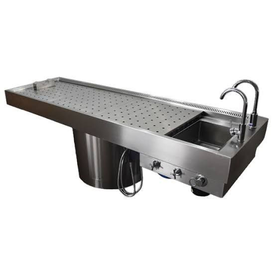 Table Top made of 14G Stainless Steel of 304 Grade with raised edges and built-in integral sink.